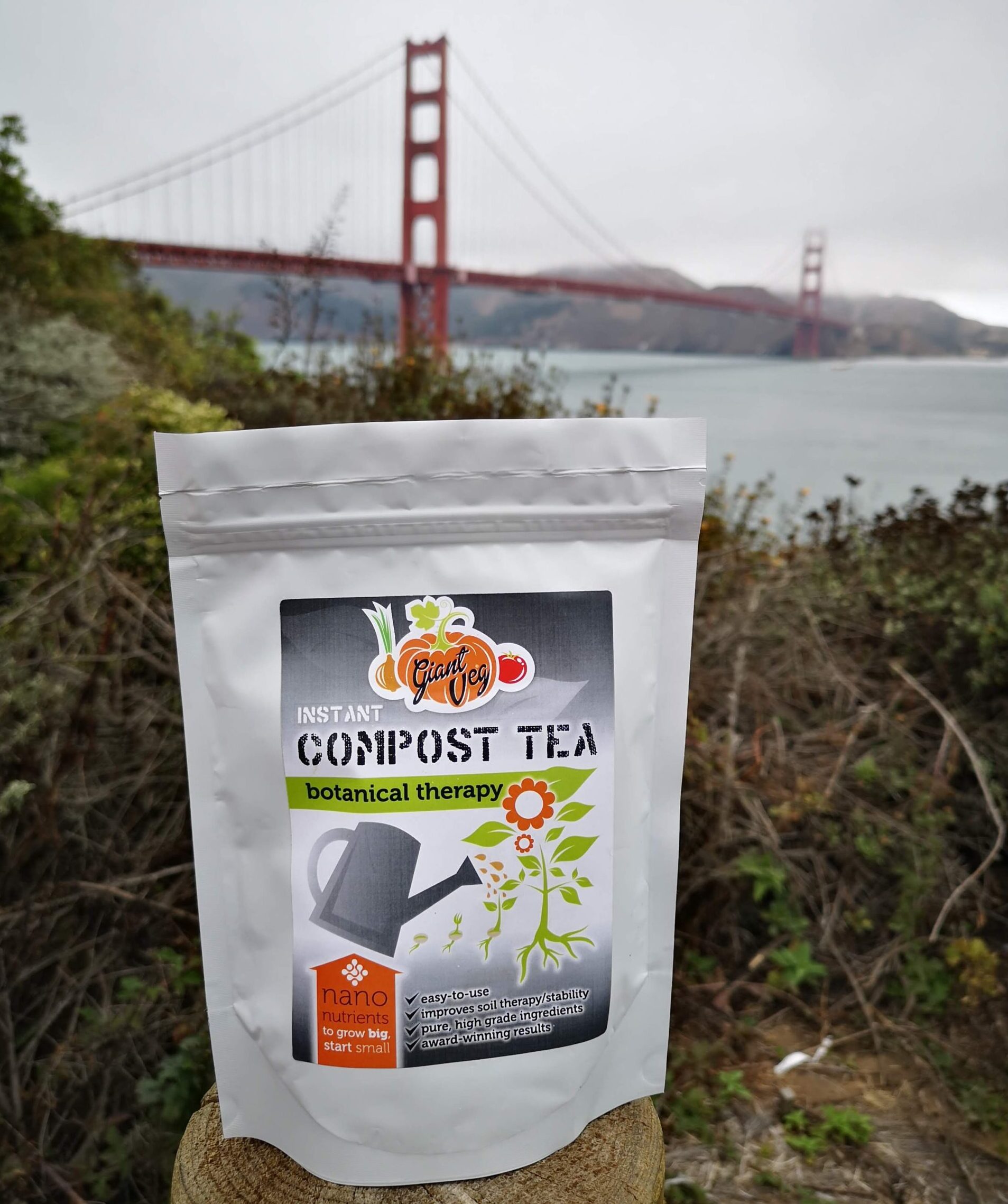 Giant Veg Instant Compost Tea is packed with other natural substances to help promote strong and healthy growth – Humate (Humic acid), as well as cytokins, auxins and giberelins along with amino acids and trace elements all derived from a natural marine algae(Ascophylum nodosum).
